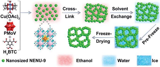 8、A gel-like/freeze-drying strategy to construct hierarchically porous polyoxometalate-based metal–organic framework catalysts, DOI: 10.1039/c7ta10334d, J. Mater. Chem. A, 2018, 6, 4678.