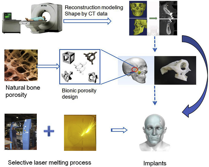Zhao[9]等采用计算机辅助设计方法结合激光熔化技术构建仿生骨组织工程支架。采用参数化建模方法设计了新型多孔结构。研究了精确模型的多孔性和支架的力学性能等关键性能。通过支架多孔结构的设计、制造、表征与评价、参数化建模,研制了具有良好力学性能和生物学性能的多孔钛骨组织工程支架。这种优化设计和精确制作种植体对骨组织修复重建具有重要意义。