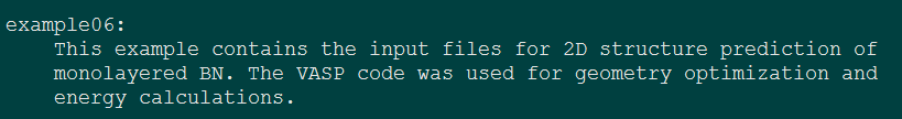 去看例子里的README,看自己想要模拟那个体系,以二维材料结构预测为例