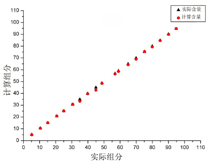 图10 混合相中氧化铝的计算含量与实际含量(wt%)的关系