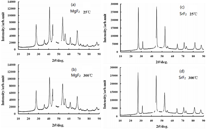 图15 MgF2和SrF2材料在不同温度下的XRD谱图