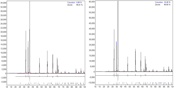 图9 两种不同ZnO/Al2O3混合相的精修结果