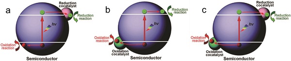 图二、不同构型的表面助催化剂修饰的半导体的示意图