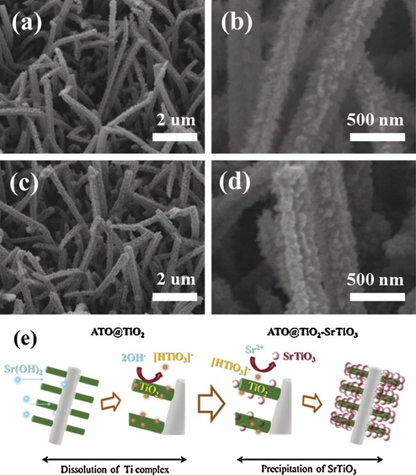 (e)ATO@TiO2-SrTiO3形成过程示意图。