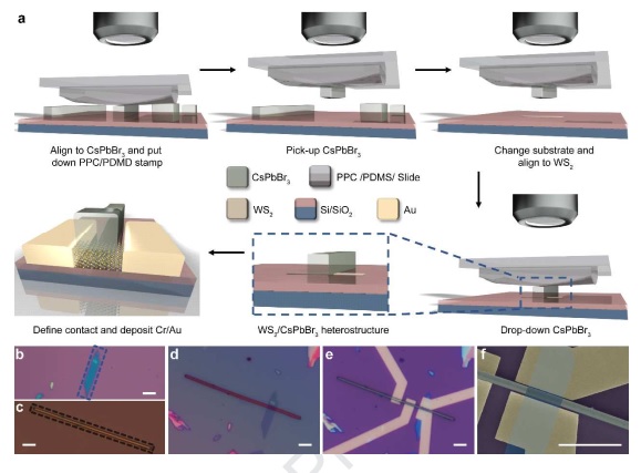 图1 WS2/CsPbBr3-vdWS组装工艺及器件结构