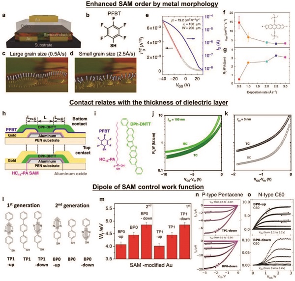 (o)基于SAM 处理的Au电极的n型C60-OFETs的输出特性。