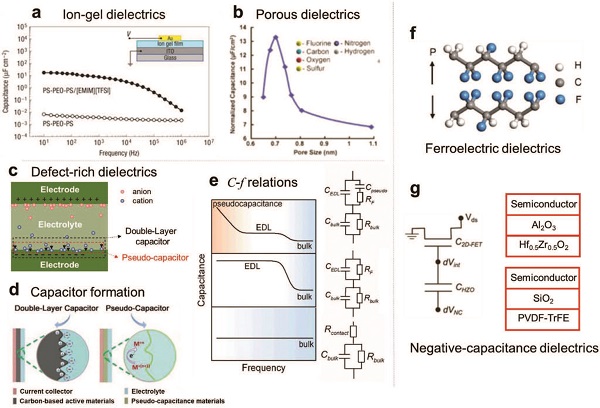 (c)具有电双层(EDL)电容器和伪电容器的富缺陷电绝缘层;