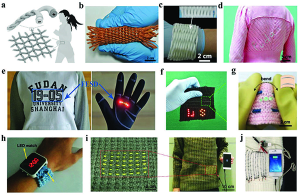 (i,j)可穿戴纺织电池为手机充电的照片。