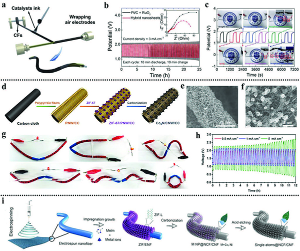 (a)空气电极和纤维状ZAB的制造过程的示意图。