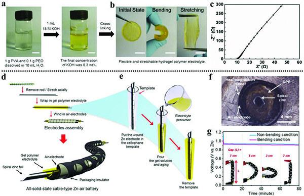 (a)电缆型和柔性LAB的设计和制备示意图。