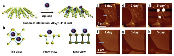 f-h)暴露于空气中的BPAg(+)片的AFM图像f)1天,g)3天,和h)5天