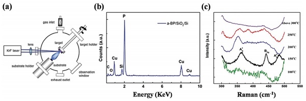 a)用于生产超薄BP的脉冲激光沉积(PLD)的装置示意图