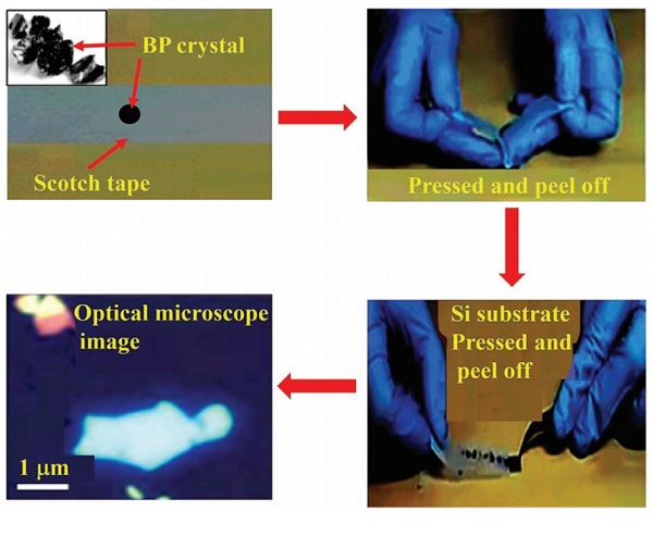 Figure 8. 采用粘性透明胶带从大块BP中获得少量磷的机械剥离程序