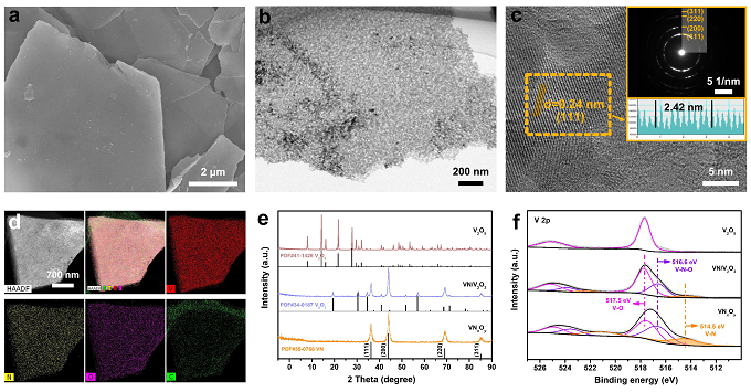 (e)VNxOy,VN/V2O3和V2O5的XRD图谱;