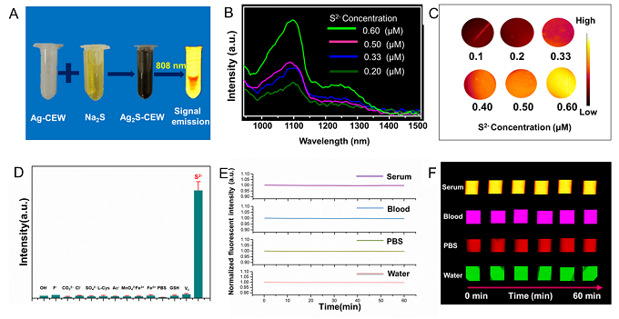 (A)S2-触发的Ag-CEW溶液的NIR-II发光图;