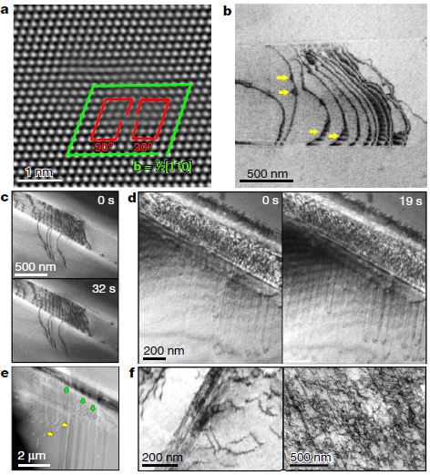 近期,美国佐治亚理工学院的Ting Zhu、劳伦斯-伯克利国家实验室的R. O. Ritchie以及浙江大学的余倩(共同通讯作者)等人利用原子级分辨的化学图谱表征研究揭示了几类典型和新型高熵合金的元素分布情况。研究人员首先研究了面心立方结构CrMnFeCoNi Cantor合金,在这种合金中,五种构成元素的分布式相对随机统一的。与此相反,在新型CrFeCoNiPd合金中,钯原子拥有截然不同的原子尺寸和电负性,使得合金的均一性明显减弱,并且五种元素更加趋向于聚集。原位TEM分析显示,在应变实验过程中,合金出现了大量相对早期塑性形变的位错交叉滑移,导致出现了非常强大的位错相互作用。由于组分分布的明显波动,这类变形机制在新型CrFeCoNiPd合金中尤为增强,并直接致使该种合金获得了更高的屈服强度。研究认为,图谱绘制原子尺度元素分布的方法为深入理解材料化学结构提供了新的可能,并为通过调控材料组分从而获得优异力学性能提供了基础。2019年10月09日,相关成果以题为“Tuning element distribution, structure and properties by composition in high-entropy alloys”的文章在线发表在Nature上。