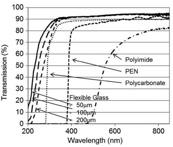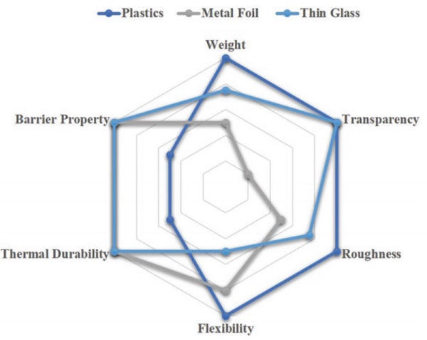 Figure 10.柔性显示技术中使用的基板材料性能比较