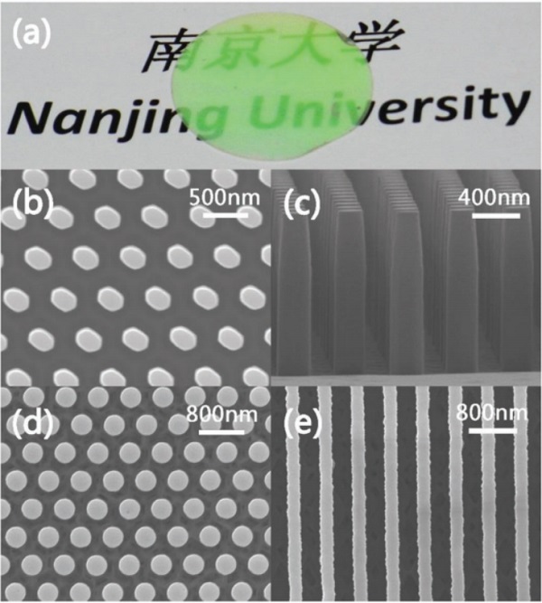 de)俯视的InGaN/GaN圆纳米线和纳米光栅的SEM图像