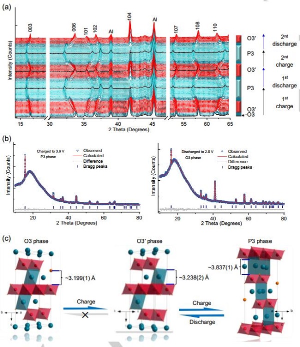 (c)典型的O3型Na离子正极的晶体结构演变。