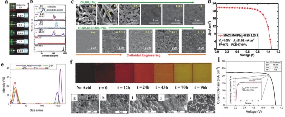 为了获得高效、稳定、无迟滞的钙钛矿太阳电池(PSC),研究者做了大量的尝试。添加剂显示出巨大的潜力来实现这一目标,并广泛应用于PSC。综述了用于PSC的各种添加剂,总结了其作为形貌调制、相位稳定、能级调节、缺陷钝化、磁滞消除和器件稳定的作用机理。添加剂可以通过影响前驱体中的胶体尺寸、形成成核的中间产物、在基底上模板化生长、诱导晶粒尺寸粗化和抑制溶液流动来调节钙钛矿薄膜的形貌,从而获得最高的23.48%的认证效率和快速的上尺度沉积方法。添加剂通过诱导晶格氢键、调节容限因子或调节表面能等途径,对稳定FAPbI3钙钛矿和CsPbI3钙钛矿相具有潜在的作用。通过调节钙钛矿的能级位置,还可以通过添加添加剂来调整PSCS的能级取向以改善其性能。此外,添加剂通过晶界或表面的离子键或配位键进行配位,可以抑制非辐射复合,抑制离子迁移,保护钙钛矿不受损伤,从而提高开路电压,消除磁滞现象,显著提高操作稳定性。