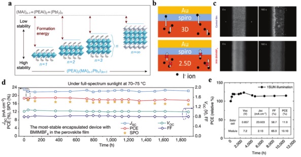 图14用大的阳离子添加剂抑制离子迁移,提高PSC的运行稳定性