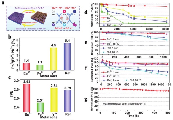 图16用Eu3+–Eu2+离子对添加剂提高PSC的工作稳定性