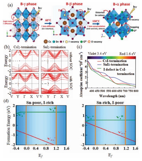 a)光诱导的I-离子在B-γ相,B-β相和B-α相中的CsSnI3多晶型物扩散的机理