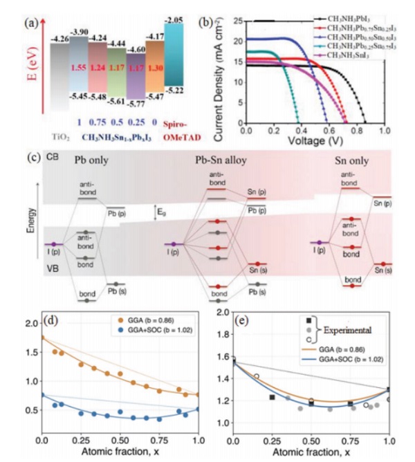 Figure 5.基于锡比的MA3Sn1-xPbxI3钙钛矿表征