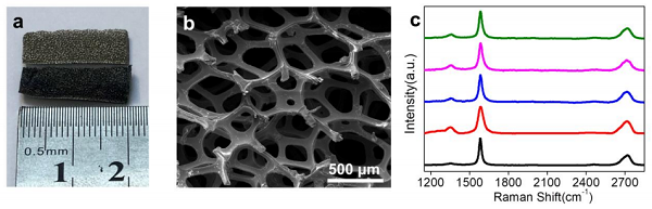 (c) 乙醇淬火后的泡沫镍表面的石墨烯的拉曼光谱;