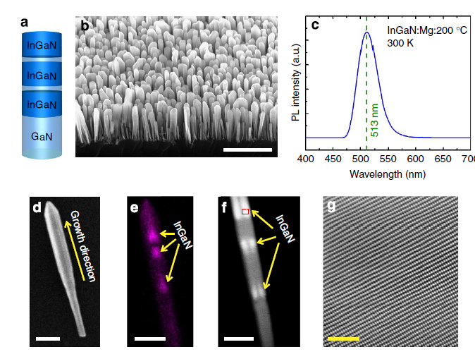 图5 GaN/InGaN的扫描,荧光,透射及高分辨表征 [7]。
