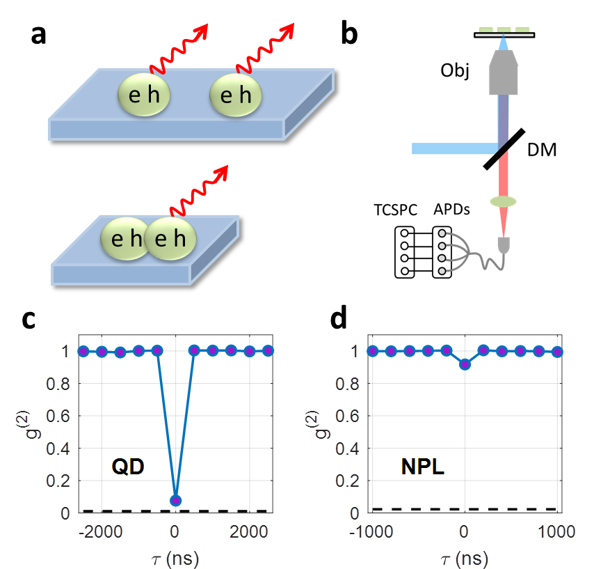 图1 光路图及典型的量子点和纳米片的光子反聚束效应