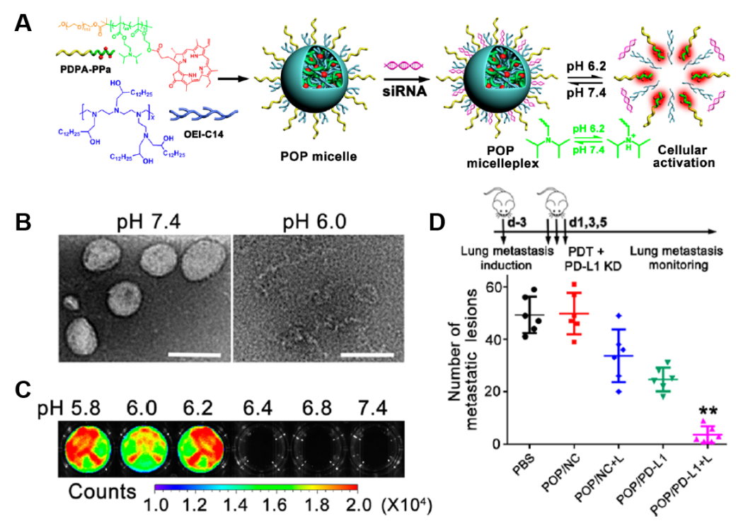 (D) 酸性应胶束联合RNAi与光动力治疗提高抗肿瘤转移治疗效果