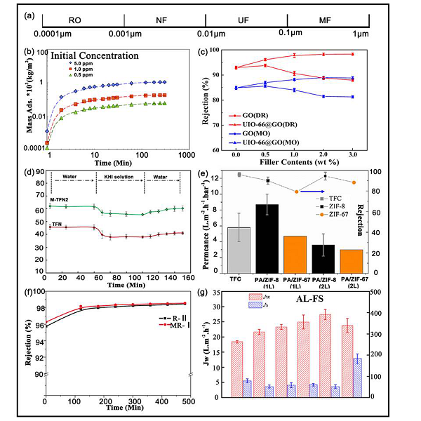 图2. MOF膜在废水处理和水资源再生领域的时间发展图。