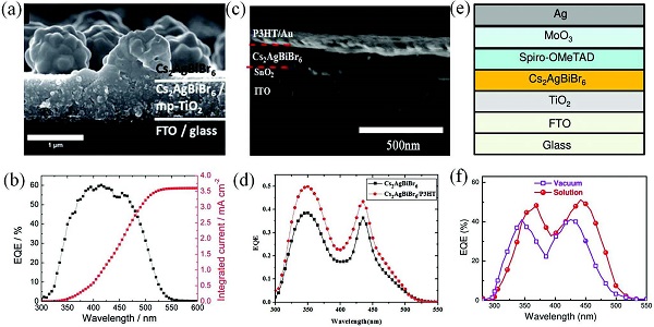 (e-f)以TiO2/Cs2AgBiBr6为基器件,以Spiro-OMeTAD/MoO3为HTM和构成相应的EQE谱。