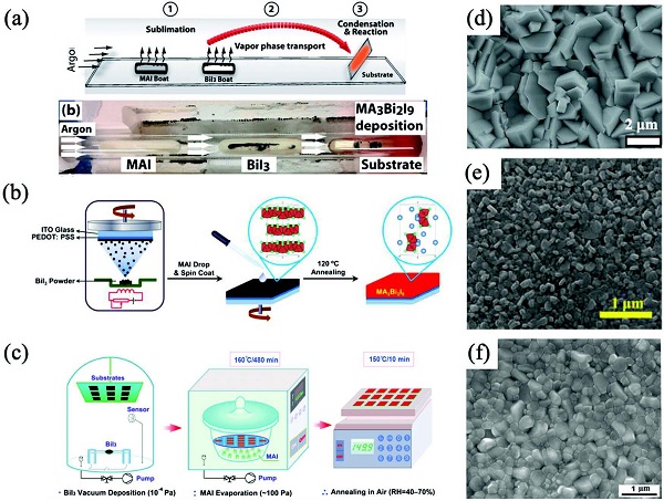 (a)两步沉积过程包括首先将MI和BiI3共蒸发,然后在BiI3蒸气下对膜进行后退火,MI是指AgI。