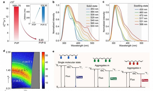 图4.PVP-S的超长有机磷光和多种聚集态的机理