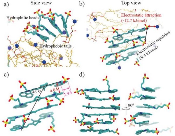 (b)DMPC存在下FD-1080的分子动力学模拟的俯视图;