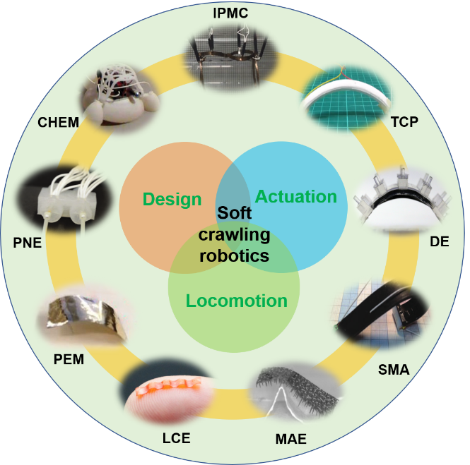 Chen, S., Cao, Y., Sarparast, M., Yuan, H., Dong, L., Tan, X., Cao, C., Soft Crawling Robots: Design, Actuation, and Locomotion. Adv. Mater. Technol. 2019, 1900837 https://onlinelibrary.wiley.com/doi/abs/10.1002/admt.201900837