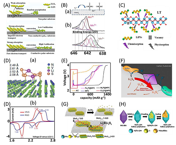 (A)LDH@NG的协作界面的示意图,其中通过合理地对* Li和* S进行锁定,促进LiPS的吸附和氧化还原;