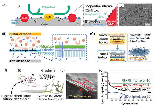 图七、2D材料在隔膜/中间层中充当功能层。