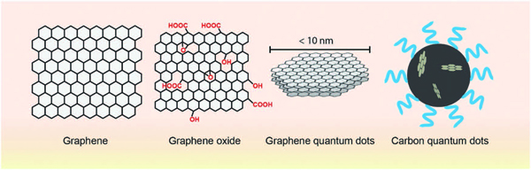 图2 石墨烯、氧化石墨烯、石墨烯量子点和碳量子点的结构差异示意图