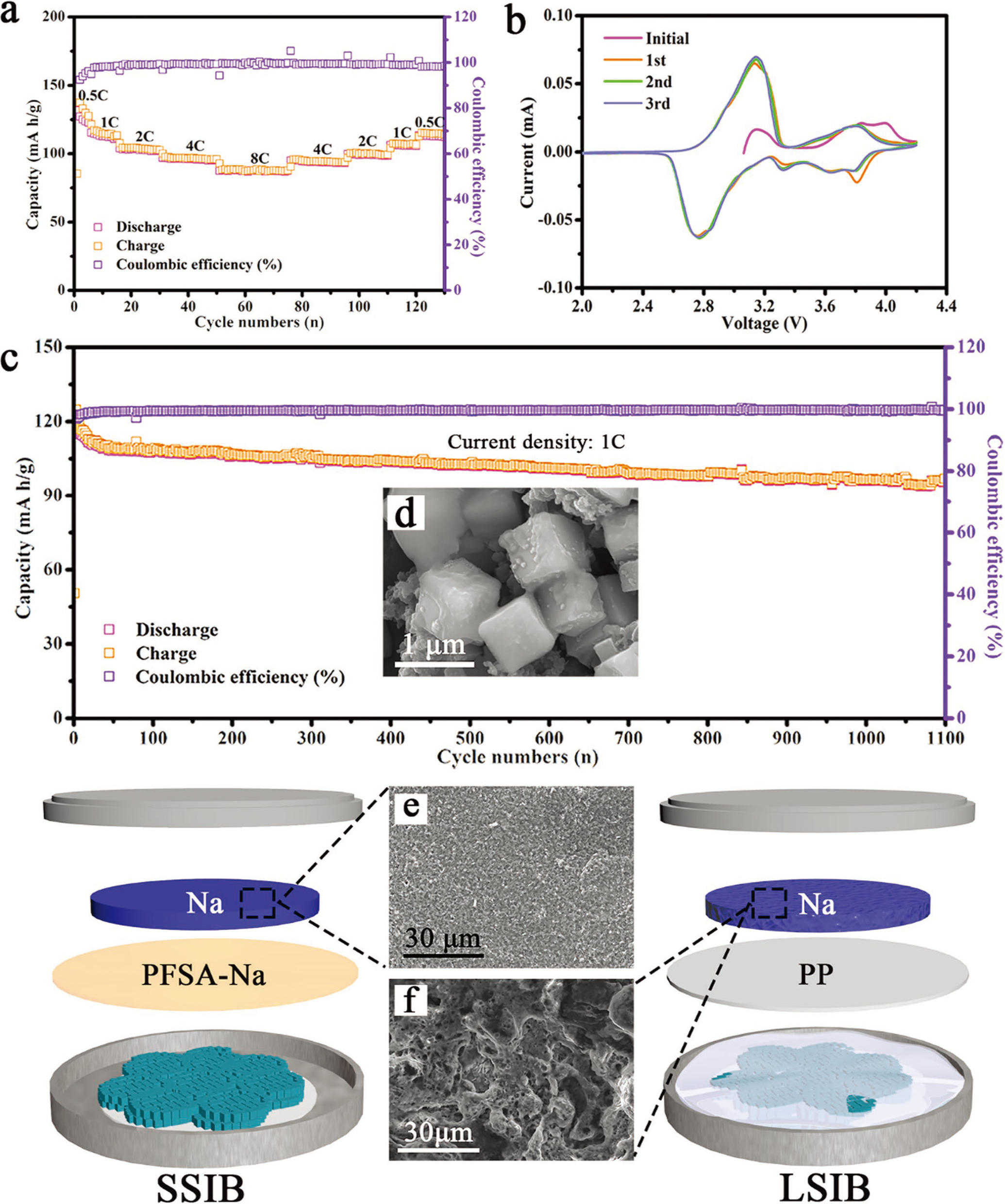 (c)在1 C的电流密度下,SSIBs的长循环性能图;