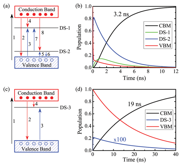 图3:电子-空穴复合通道和载流子随时间演化过程。
