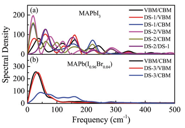 图4:含有VI—缺陷的MAPbI3和MAPb(I0.96Br0.04)3的能隙傅里叶变换谱。