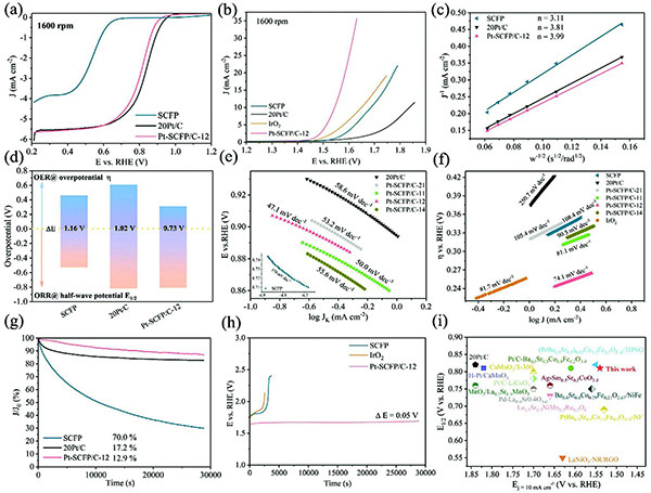(a,b)SCFP,20Pt/C和Pt-SCFP/C-12 ORR和OER测试的LSV曲线。