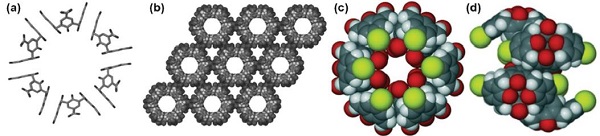 除了在其宿主−客体化学基础上的广泛应用外,大环还被用作构建固体材料的基石,包括多孔有机聚合物(POPs)、金属-有机骨架(MOFs)、和结晶有机材料(COMs)。特别是COMs,这是一类具有制备简单、结晶度高的有机材料。与由无机(金属离子)和有机物种(有机配体)通过配位组成的MOFs不同,COMs是一种由共价键或非共价键连接的纯有机物组成的结晶材料,其结构具有多样性、化学稳定性、溶液加工性等。对于非共价键连接的COMs,典型的材料是具有耐人寻味性质的有机分子晶体,如半导体、孔隙度等,由于晶体状态下有机组块堆积效率低,一些分子晶体表现出外部孔隙,通常被称为氢键有机框架(HOFs)或超分子有机框架(SOFs)。