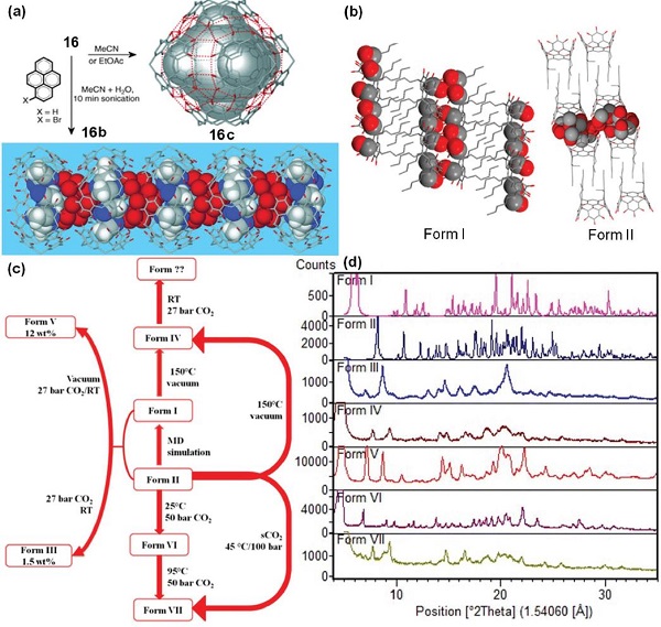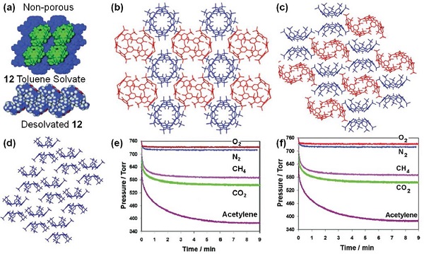 (a)非多孔(和非活性)12甲苯溶剂的单晶X射线结构和12的去溶剂/升华形式;