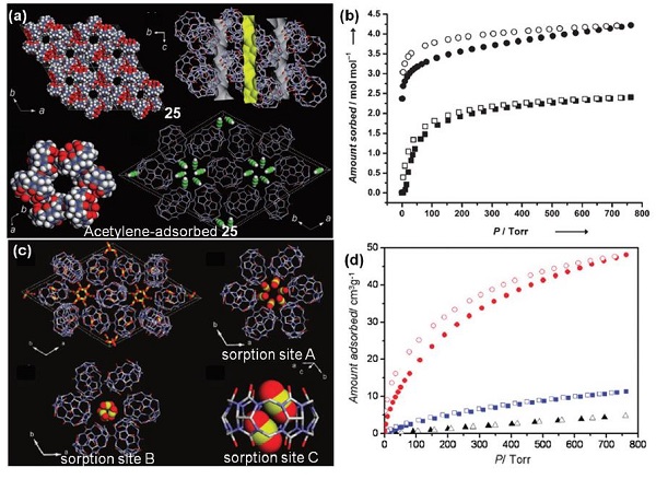 (a)25单晶X射线结构 (顶部),乙炔吸附25 (底部);