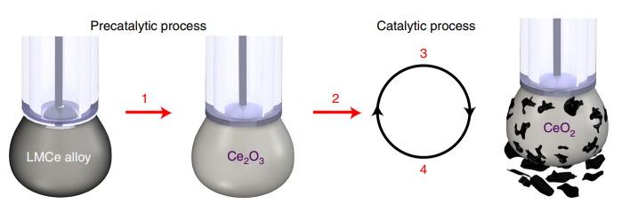 来自澳大利亚新南威尔士大学的Kourosh Kalantar-Zadeh、墨尔本皇家理工大学的Torben Daeneke和新南威尔士大学的Dorna Esrafilzadeh研发了一种液态金属电催化剂,可以实现在室温下将气态的二氧化碳直接转化为含碳固体,并进而得以将产物制成超级电容器。这一液态金属催化剂基于无毒的镓合金,能防止结焦,防止催化剂活性下降。其最终产物超级电容器则有望成为轻量级电池材料。值得注意的是,研究人员指出,此前的碳纳米材料制备方法通常需要几百摄氏度的温度,而他们研发的技术可以有效降低二氧化碳转化的高耗能需求。