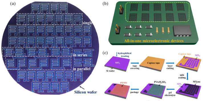 综上所述,该工作设计了一种利用可扩展的和低成本的TCC工艺在Si/SiO2晶片上制造的MXene基MSCs。具有超薄MXene膜的芯片式MSCs表现出优异的电化学性能,包括高的面积比电容和体积比电容,高功率和能量密度,以及优异的循环稳定性。该TCC制造平台为开发基于二维材料的芯片式储能器件提供了新的平台,在下一代半导体应用领域具有广阔的前景。